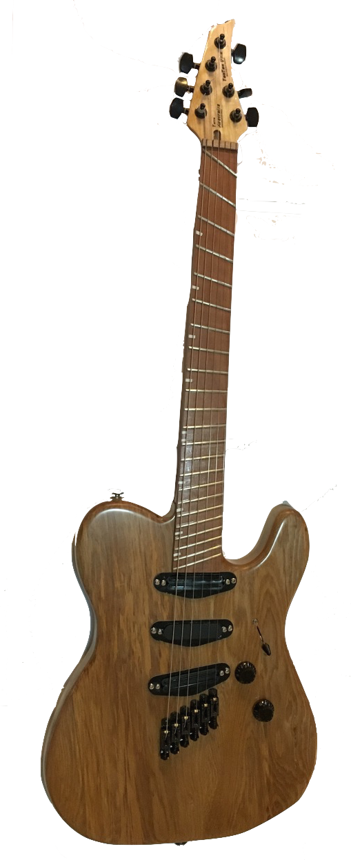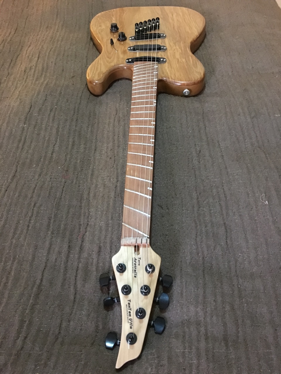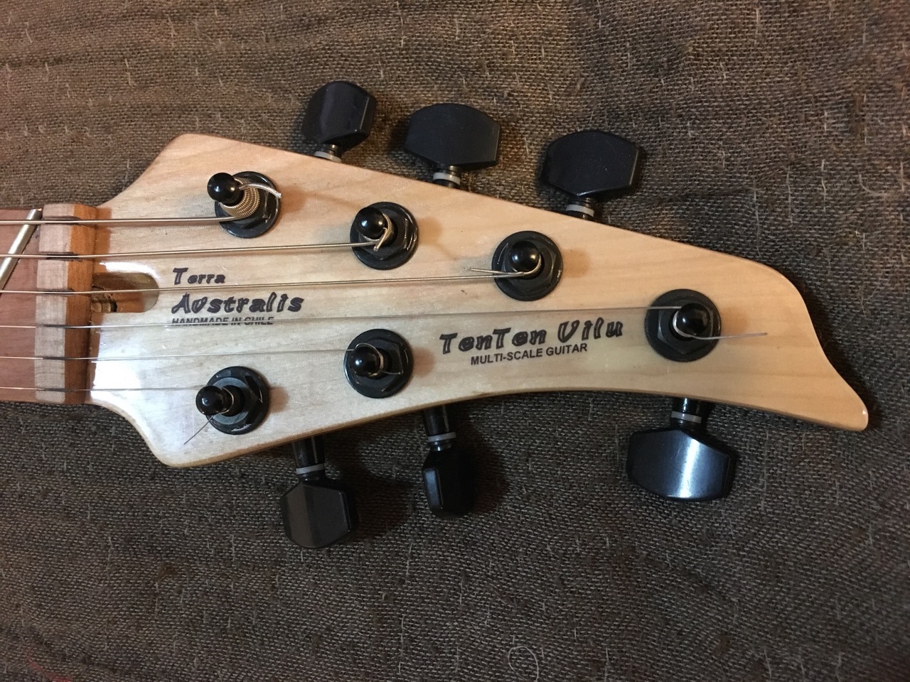 Guitarra eléctrica Fabricada en Chile con maderas nativas. El modelo Ten Ten Vilu es una Telecaster de cuerpo sólido, Multi escala. La caja está construida en varias capas de madera de Mañio y Tepa, El Mástil es de Raulí y Lenga. Tiene circuito eléctrico estilo stratocaster. Tres cápsulas, dos Hot Rail Humbucker y una single coil. Además trae un piezo eléctrico en el puente de la guitarra, incluye un selector de cinco posiciones. El puente es fijo e individual por cuerda con roller de bronce. Excelente sustain.