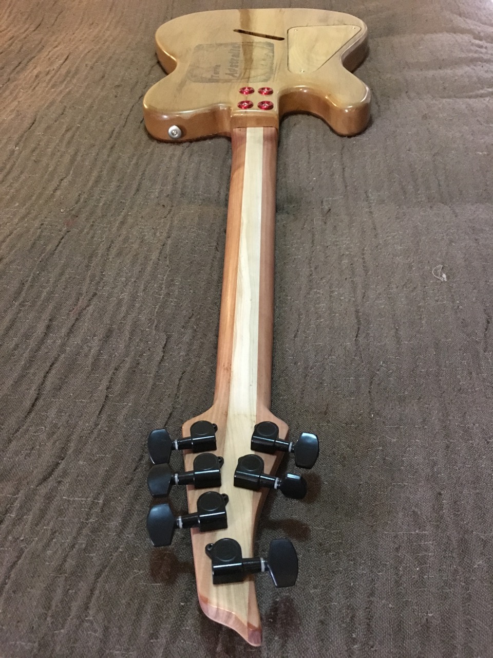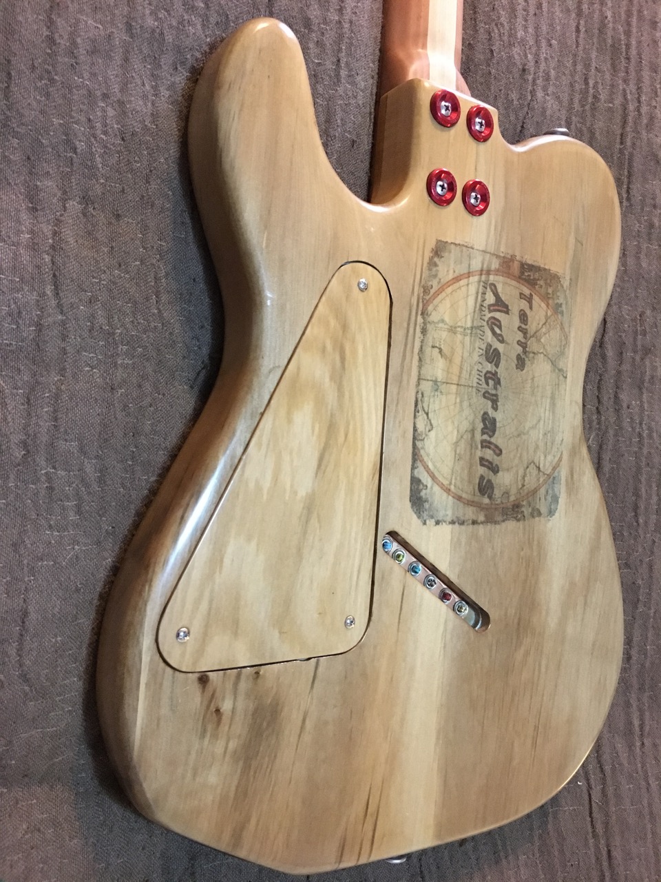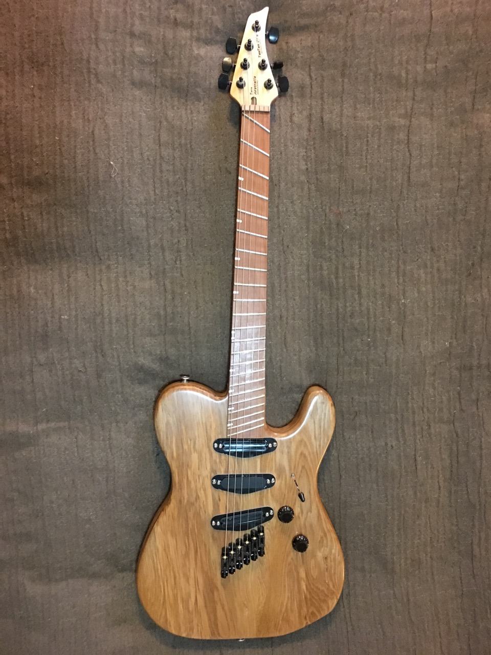 Guitarra eléctrica Fabricada en Chile con maderas nativas. El modelo Ten Ten Vilu es una Telecaster de cuerpo sólido, Multi escala. La caja está construida en varias capas de madera de Mañio y Tepa, El Mástil es de Raulí y Lenga. Tiene circuito eléctrico estilo stratocaster. Tres cápsulas, dos Hot Rail Humbucker y una single coil. Además trae un piezo eléctrico en el puente de la guitarra, incluye un selector de cinco posiciones. El puente es fijo e individual por cuerda con roller de bronce. Excelente sustain.